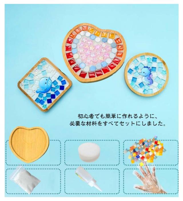 モザイクタイル コースター DIYキット 竹製 手作り材料 初心者OK 天然竹素材 夏休み ガラス 可愛い 持ち運び 減圧おもちゃ 簡単 手作り材料 小学生 低学年 高学年 子供 大人 キッズ 入園祝い 男の子 女の子 手作り工作キット 北欧風