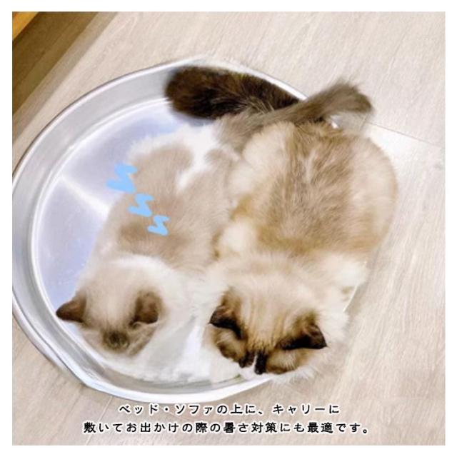 | 猫、犬、小動物のために開発した夏用のベッド アルミ素材でできているため、夏でも猫を涼しく快適に保つことができます。 水で流し洗ってやわらか素材の雑巾使って拭くだけ綺麗になる。 暑い日でもひんやりペットベッドを使用して気持ちよく眠れます。 ベッド・ソファの上に、キャリーに敷いてお出かけの際の暑さ対策にも最適です。 | |
