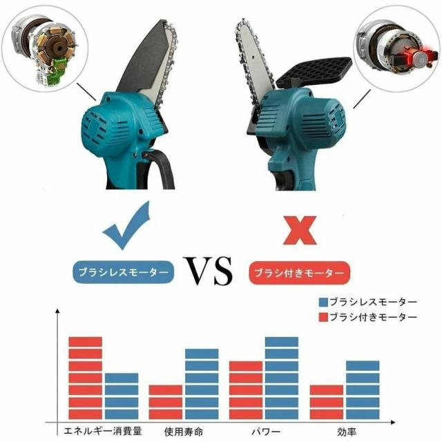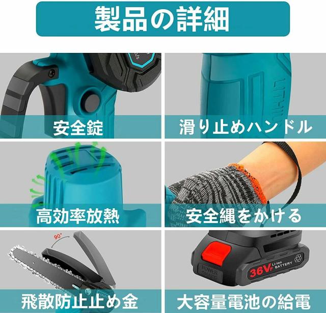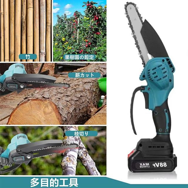 電動チェーンソー 充電式 電動ノコギリ 家庭用 小型電動のこぎり 片手軽量 強力 木工切断 枝切り 園芸設備 庭木 電動工具 4/6インチ マキタバッテリー互換対応