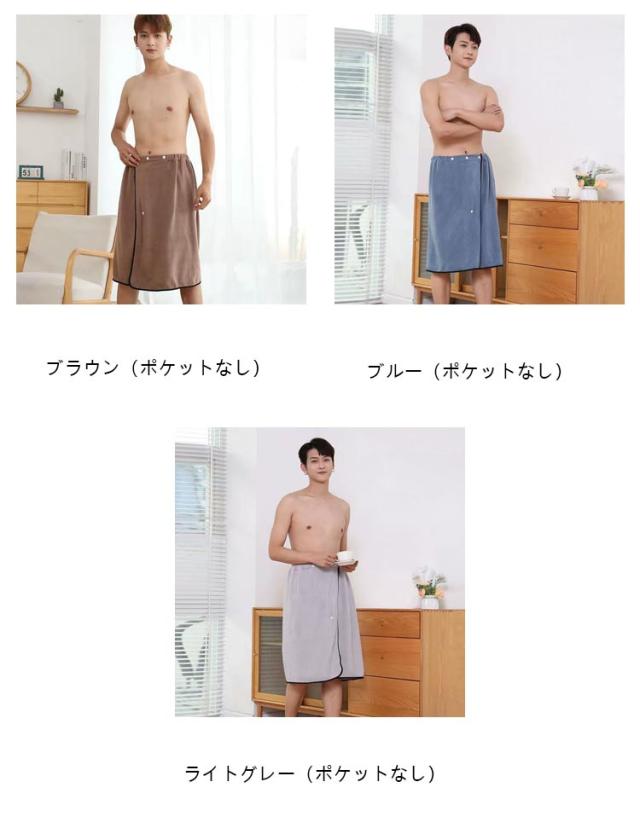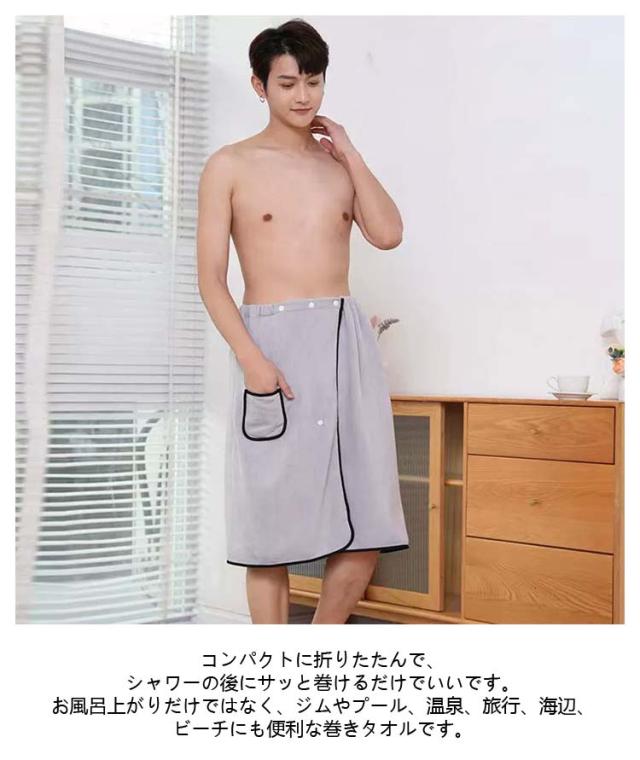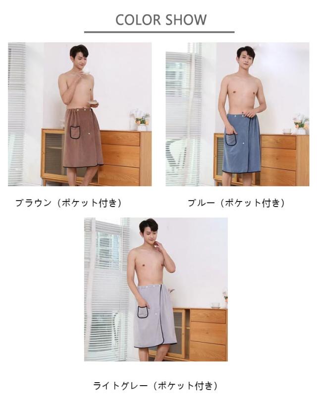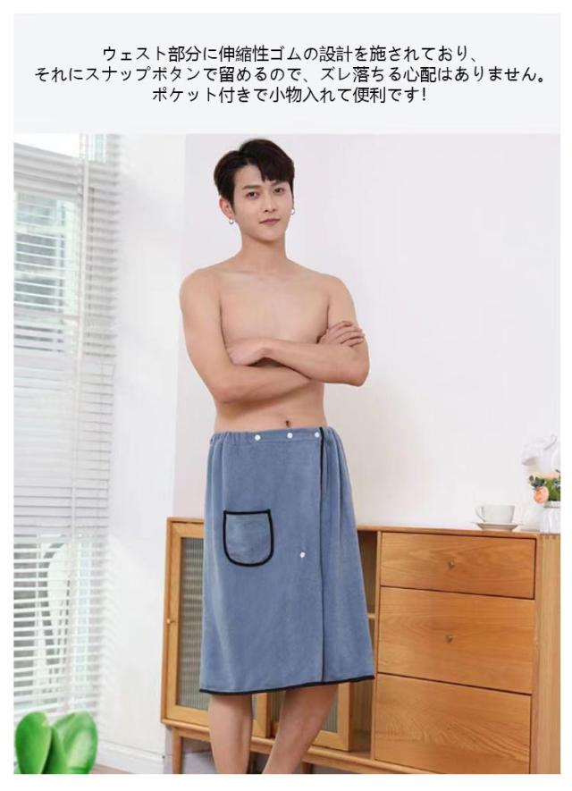 ラップタオル メンズ サイズ調整可能 バスローブ 巻きタオル ポケット付 バスタオル 着る 70cm 大判 プールタオル ビーチタオル 吸水 速乾 柔らかい マイクロファイバー お風呂 プール スイミング 男子 男性 海水浴 お着替えタオル 軽量 部屋着 速乾