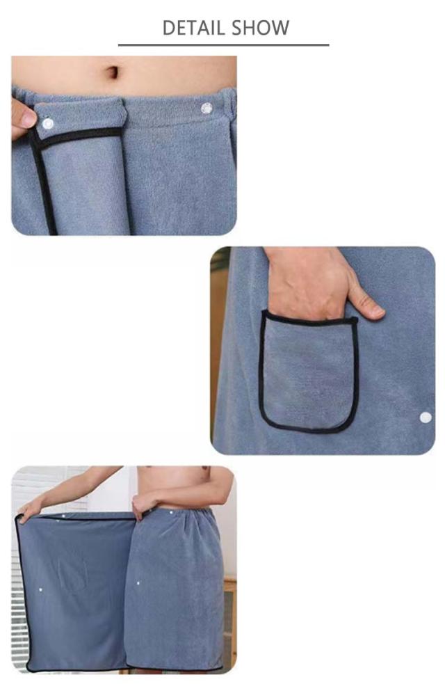 | 着心地が良く、通気性、吸水性、速乾性に優れたマイクロファイバーの素材を採用されており、軽くて薄く、季節を問わず快適にお使いいただけるバスタオルです。 ウェスト部分に伸縮性ゴムの設計を施されており、それにスナップボタンで留めるので、ズレ落ちる心配はありません。ポケット付きで小物入れて便利です! コンパクトに折りたたんで、シャワーの後にサッと巻けるだけでいいです。お風呂上がりだけではなく、ジムやプール、温泉、旅行、海辺、ビーチにも便利な巻きタオルです。 シンプルでおしゃれな見た目で、あまり着る人を選びない、しっかり体にフィットしてくれます。自分用はもちろん、父親やお友達へのプレゼントとしてもいいです。 | |