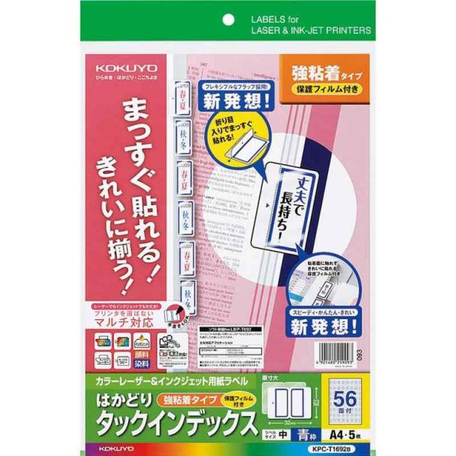 コクヨ カラーレーザー インクジェット タックインデックス 保護フィルム付 KPC-T1692B