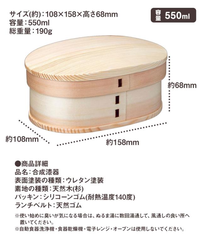 曲げわっぱ ランチボックス 弁当箱 550ml 1段 パッキン付き ベルト付き 女性 レディース 高校生 大学生 部活 子供 男子 女子 スポーツ ランチ わっぱお弁当箱 天然木 オフィス 大人 おしゃれ シンプル 無地 ギフト プレゼント WLB6