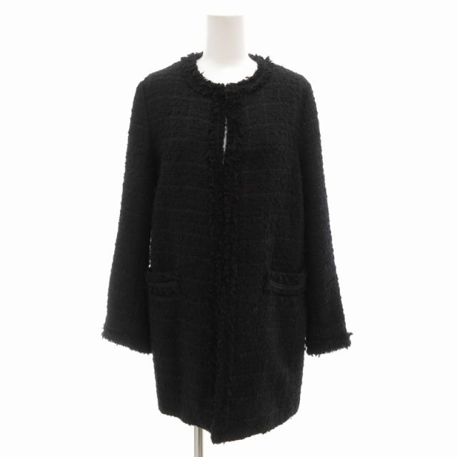 【中古】ザラ ベーシック ZARA BASIC ノーカラーコート ツイード ミドル ハーフ丈 S 黒 ブラック
