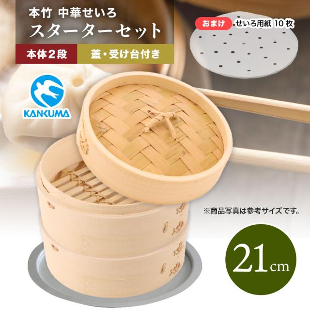 用紙のおまけ【21cm】本竹中華セイロ 2段 蓋付きセット 蓋1個+身2個+受け台 大 カンダ 蒸し料理 スチーム 器 21センチ 竹 小籠包せいろ 中華セイロ 中華料理 神田 調理器具 長持ち 中華 水はけ 竹製セイロ 耐久性 レストラン 旅館 業務用 家庭用 蒸篭 蒸籠 蓋 せいろ