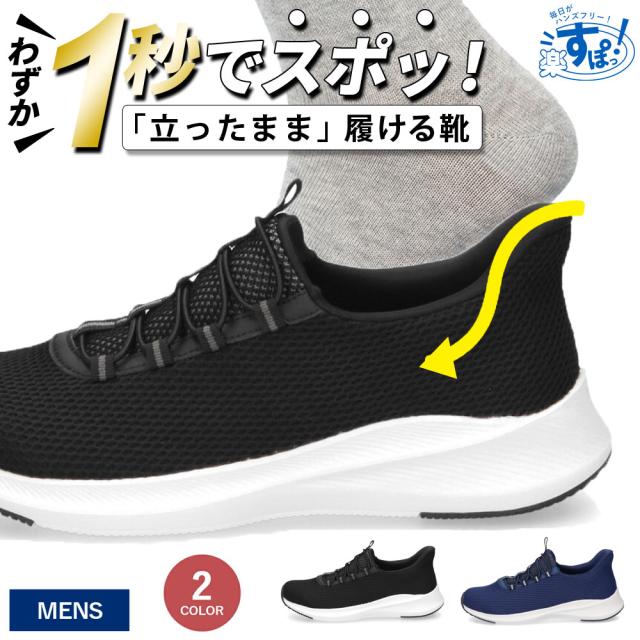 手を使わず履ける スリッポン スニーカー メンズ スリップイン ハンズフリー 履きやすい 軽い 歩きやすい 靴 黒 ブラック ネイビー 仕事 通勤 通学 運動 楽すぽっ Parade 55801