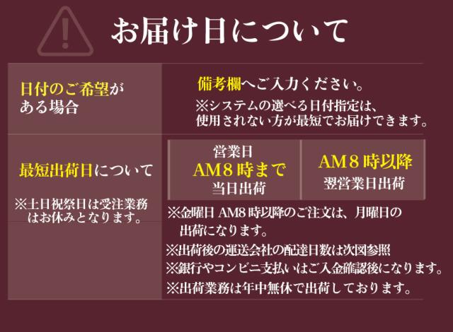 (事前の注文分の出荷は、土日祝祭日も行なっております。)
