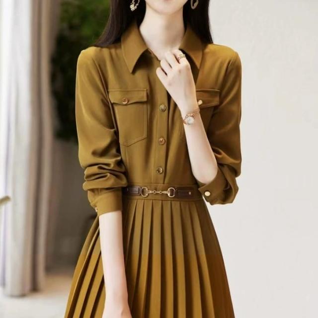 シャツワンピース レディース プリーツ 膝丈 長袖 モード系 切り替え Aライン pLegLad店 大人女子 かわいい きれいめ ゆったり 春 秋 20代 30代