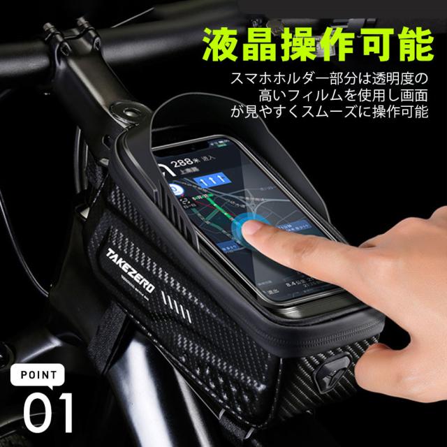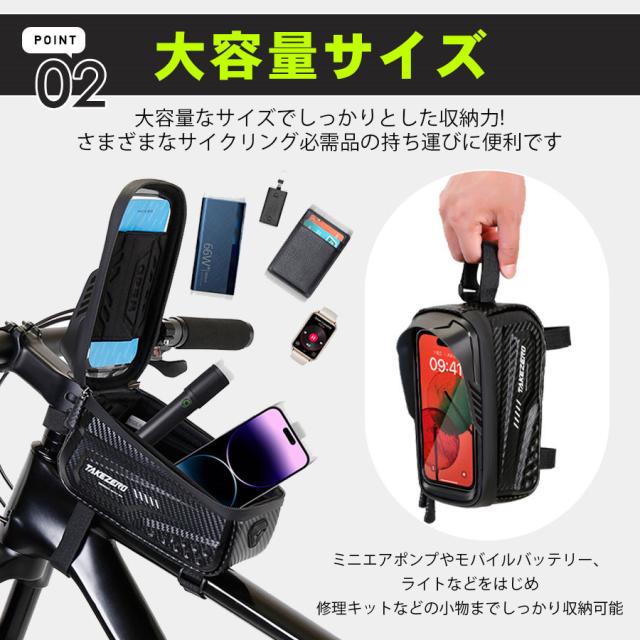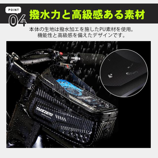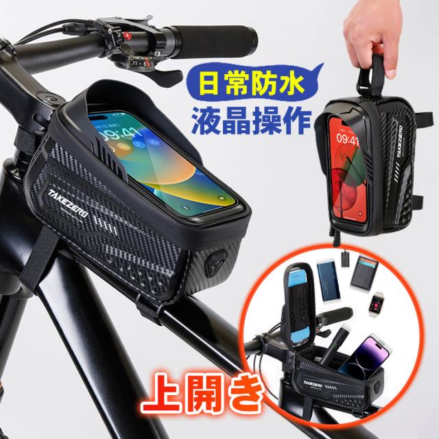 自転車 バッグ スマホホルダー トップチューブ 大型 タッチパネル フレームバッグ ロードバイク クロスバイク 大容量 撥水 雨除