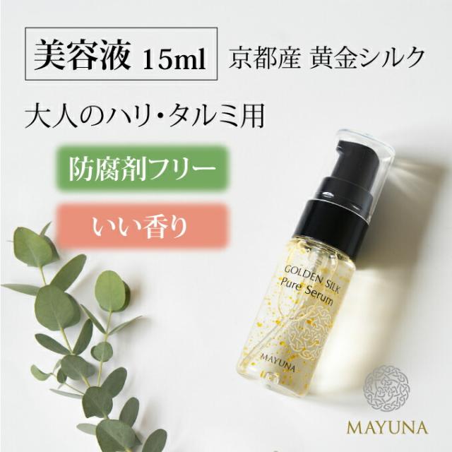無添加 美容液 シワ たるみ ハリ 15ml お試し スキンケア 美容液・オイル 乾燥 敏感肌 エイジングケア 保湿美容液 乾燥肌 オーガニック フェイスケア オイル 美容オイル はり 天然 ナチュラル ノンケミカル 自然 化粧品 送料無料 京都 ゴールデンシルク 黄金繭 マユナ MAYUNA