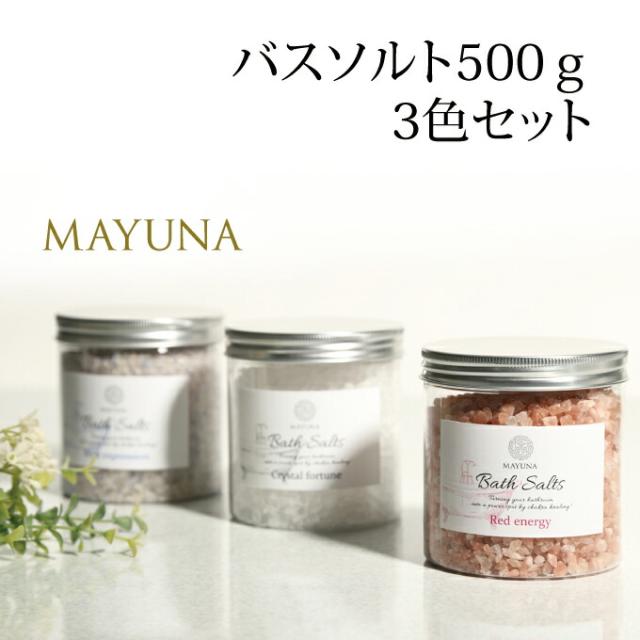 バスソルト 500g 3色 セット レッド クリスタル ブルー 入浴剤 ヒマラヤ岩塩 岩塩 冷え対策 デトックス 浄化 発汗 乾燥肌 無添加 無着色 マユナ MAYUNA 女性 おしゃれ おすすめ ギフト 人気 ヨガ 自宅ケア おうち時間 プロ仕様 約10回分*3色