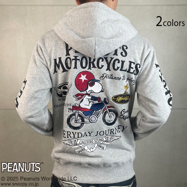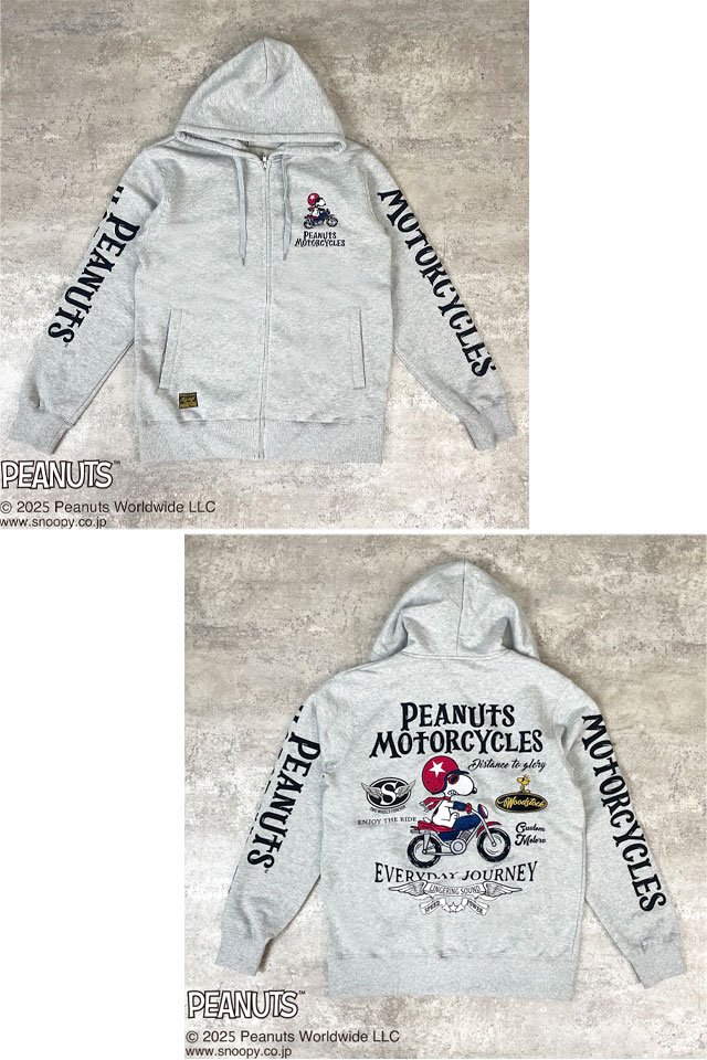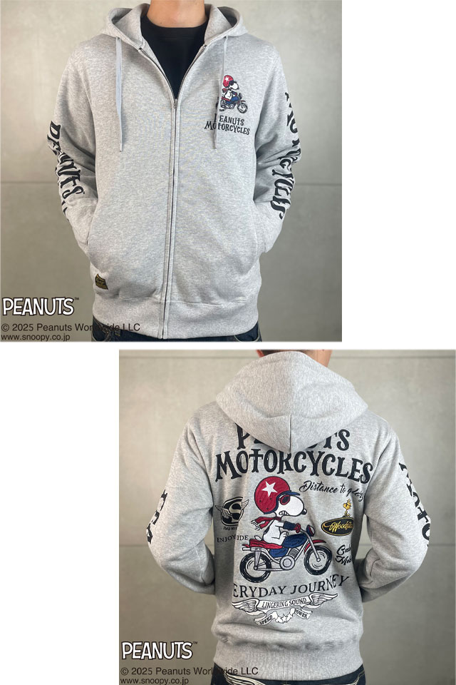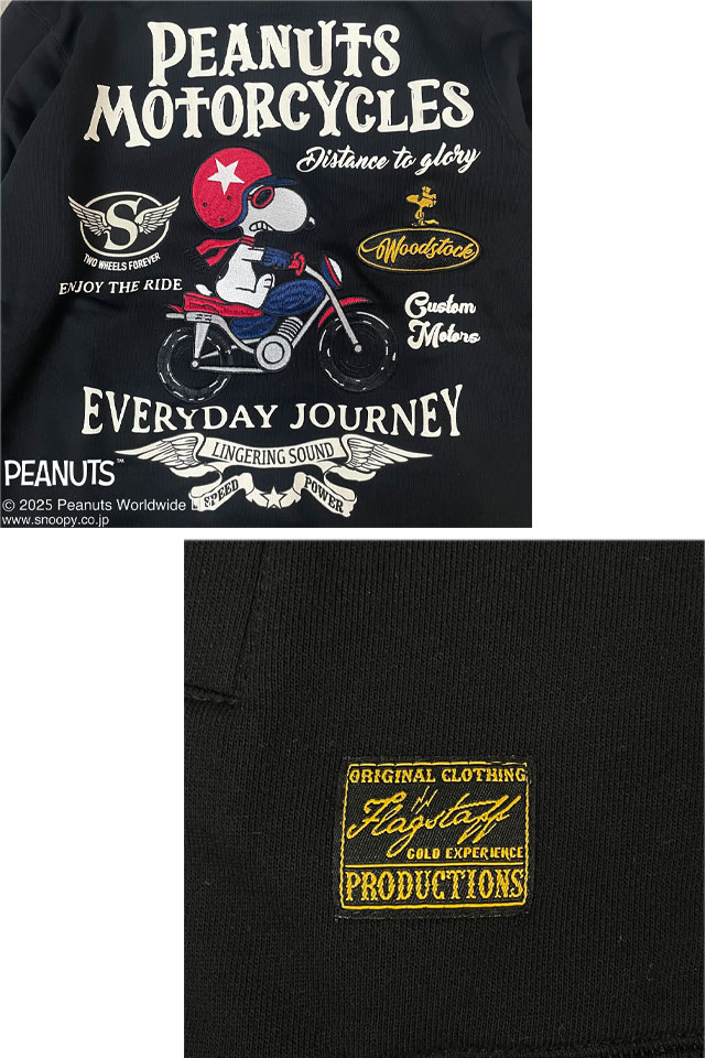 SNOOPYコラボ MOTORCYCLEスウェットジップパーカー Flagstaff 453003 フラッグスタッフ スヌーピー 刺繍 バイカー