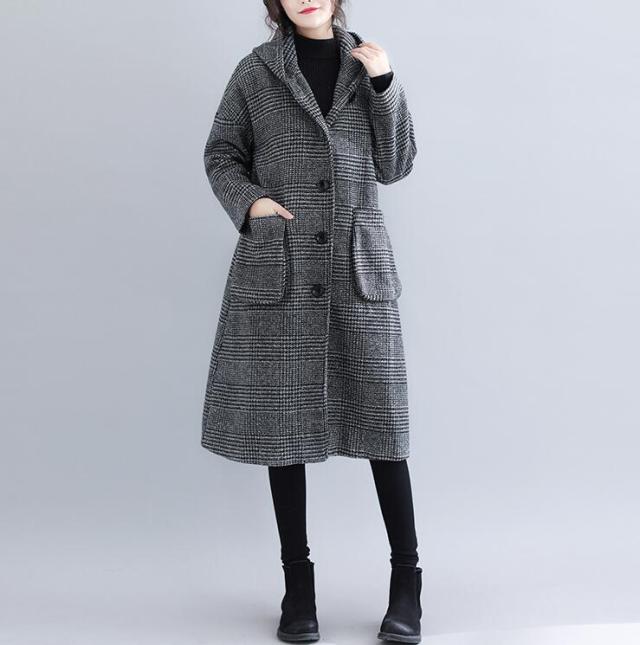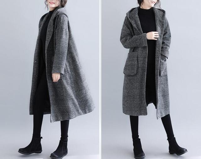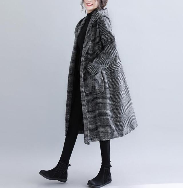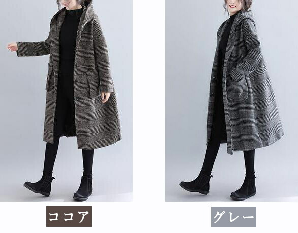 コート レディース コクーンコート フーデットコート ジャケット フード付き フードコート アウター コート ロング ロングコート チェック柄 レディース ゆったり 大きいサイズ 春秋冬 M L LL 3L