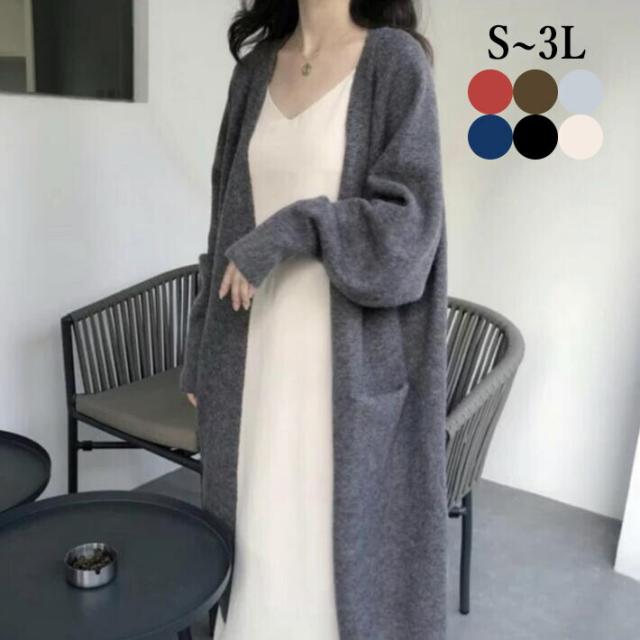 カーディガン レディース ニットカーディガン ロングカーディガン アウター ニット ゆるニット 洗える ニット ロングカーデ ビッグ カーデ 大きいサイズ 無地 羽織 春秋 S M L 2L 3L