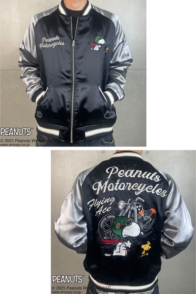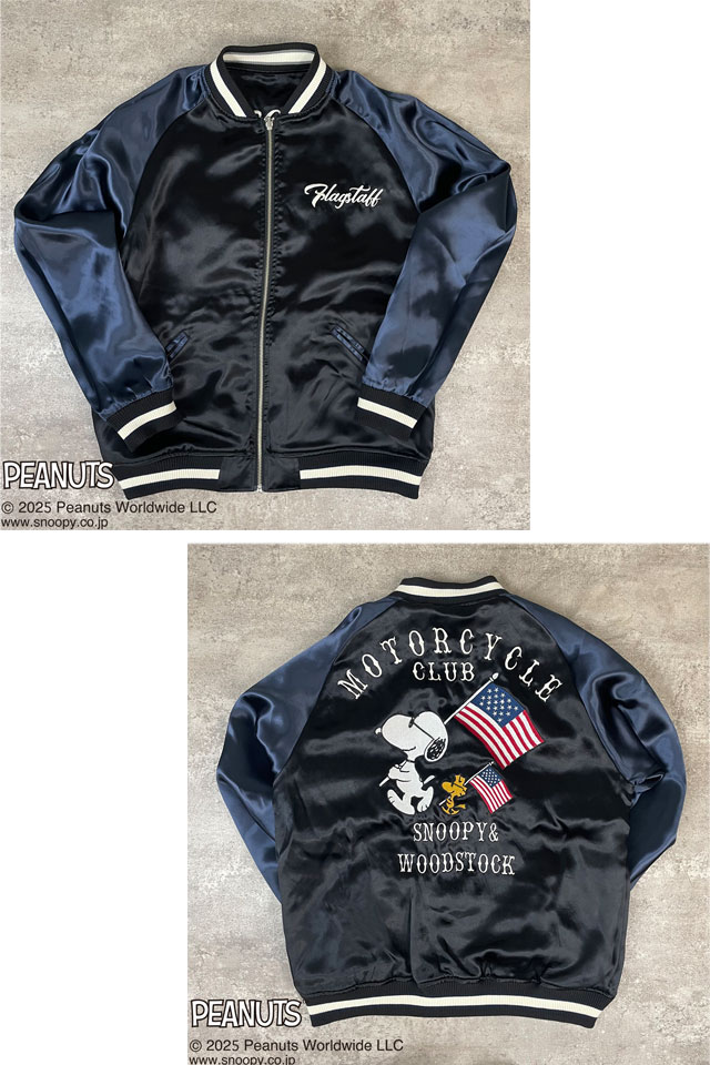 SNOOPYコラボ MOTORCYCLEリバーシブルスカジャン Flagstaff 453006 フラッグスタッフ スヌーピー 刺繍 バイカー スーベニア