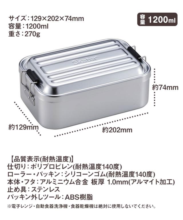 アルミ 深型 ランチボックス 弁当箱 1200ml 1段 軽量 ドーム型 パッキン付き 仕切り付き 大きめ 大容量 メンズ 男性 高校生 大学生 部活 スポーツ ランチ オフィス 大人 おしゃれ シンプル シルバー AFTD12