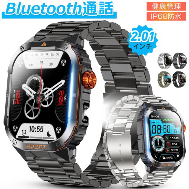 スマートウォッチ メンズ Bluetooth通話 2.01インチ大画面 血中酸素 心拍 歩数 カロリー 健康管理 スマートブレスレット 着信通知 IP68防水 リストバンド 耐衝撃 腕時計 睡眠 懐中電灯 Siri 音楽再生 S0S機能 350mAh大容量バッテリー iPhone Android ギフト D16 送料無料