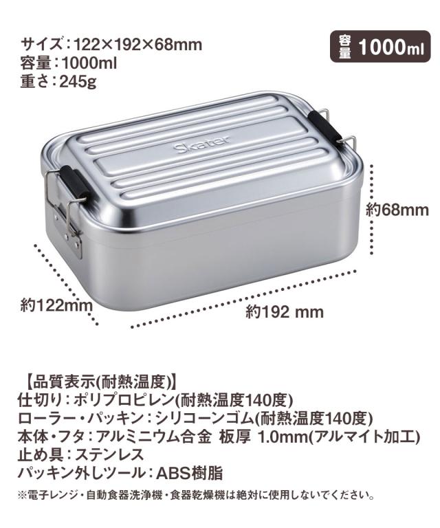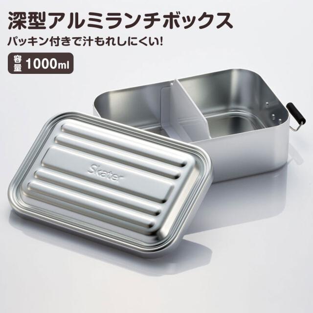 アルミ 深型 ランチボックス 弁当箱 1000ml 1段 軽量 ドーム型 パッキン付き 仕切り付き 大きめ 大容量 メンズ 男性 高校生 大学生 部活 スポーツ ランチ オフィス 大人 おしゃれ シンプル シルバー AFTD10