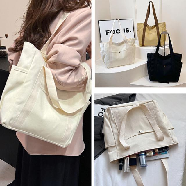 キャンバストートバッグ レディース 手提げ/ショルダー兼用 大学生 人気 シンプル 使いやすい 通勤・通学用 大容量 たくさんポケット
