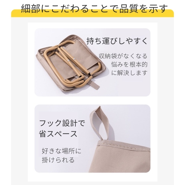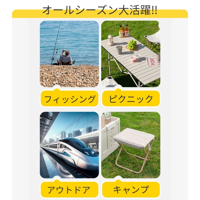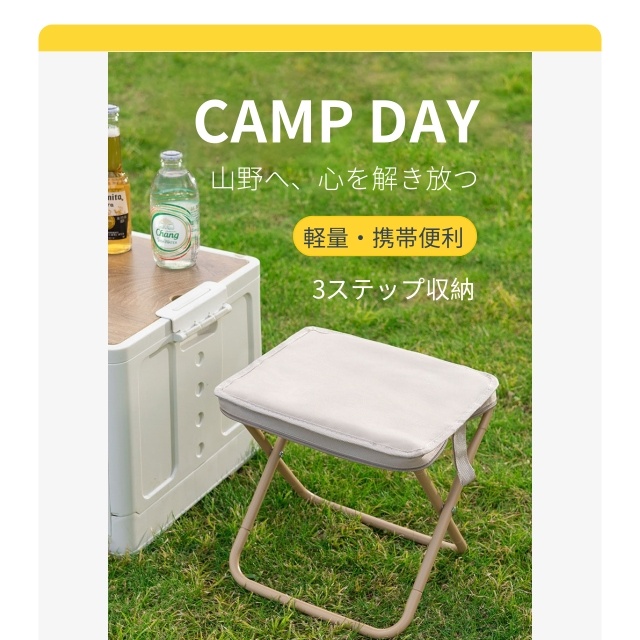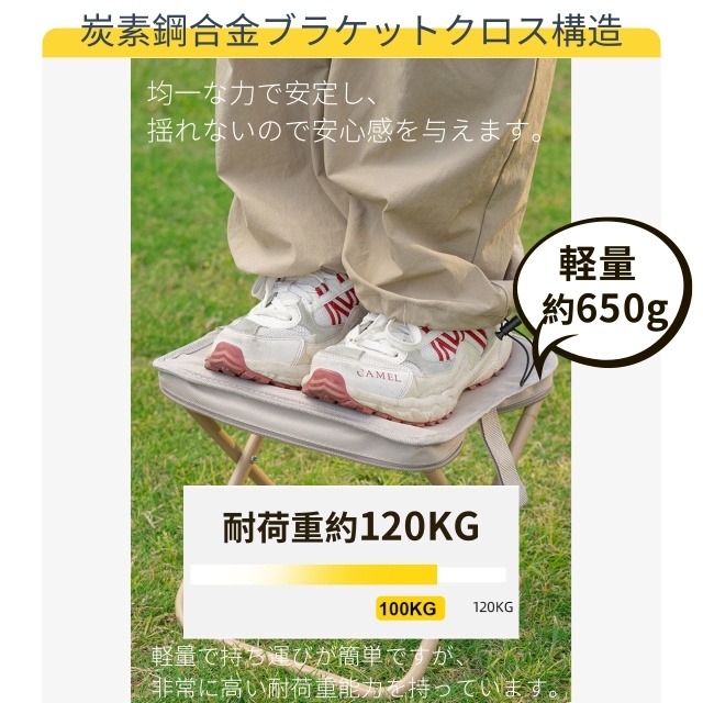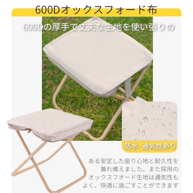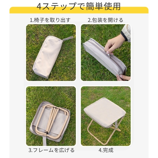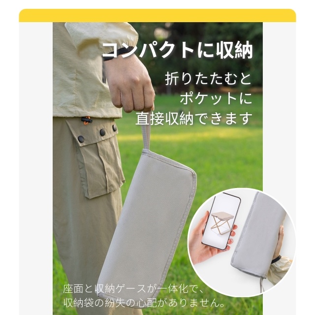 より簡単するために。折りたたむとポケットに直接収納できます。座面と収納ゲースがー体化で、収納袋の紛失の心配がありません。