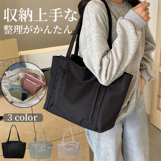 キャンバストートバッグ レディース ショルダー 大学生に人気 シンプルで使いやすい 通勤・通学用 大容量 たくさんポケット付き