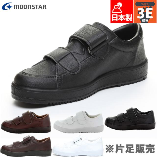 片足販売 3E 幅広 ワイド ムーンスター メンズ レディース Vステップ03 靴 シューズ 日本製 装具対応 リハビリ 片足のみ 面ファスナー ベルクロ 防滑 送料無料 MoonStar