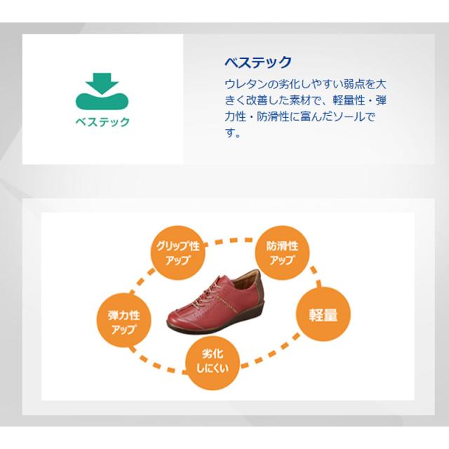 ソールは、軽量性、弾力性、防滑性に富んだ「ベステック」底材で、快適な歩行をサポートします。(理学療法士/井手 新先生と当社とが共同研究開発した商品です)