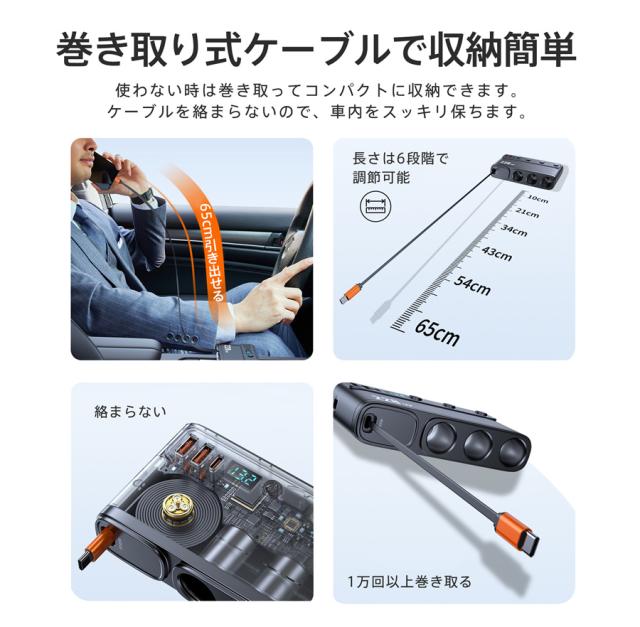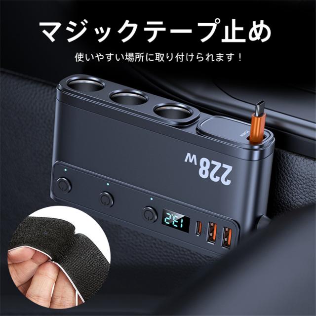 【キーワード】コンパクト 激安 母の日 父の日 新生活 おしゃれ セール シンプル 便利 無地 長持ち 耐久性 新作 人気 定番 敬老の日 多機能 軽量 操作簡単 プレゼント シガーソケット 3連 9in1 usbポート 228W 増設ソケット 車載充電器 カーチャージャー iphone コンセント PD45W 急速充電 高速 12V/24V スマホ タブレット パソコン 乗用車 自動車 トラック 分配器 スマートフォン 延長 独立スイッチ 巻き取り式 伸縮ケーブル