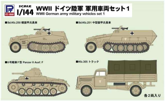 Sd.Kfz.250 軽装甲兵員車、Sd.Kfz.251 中型装甲兵員車、II号戦車F型、Kfz.305 トラック、各2両入