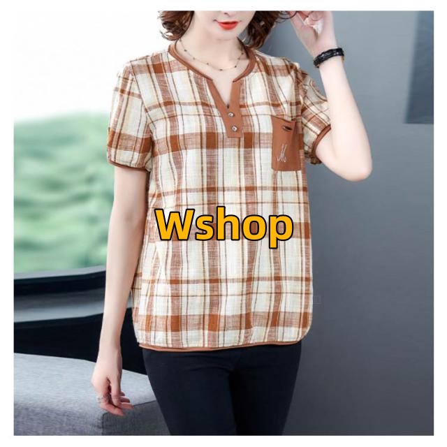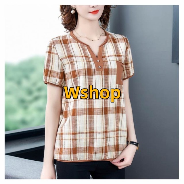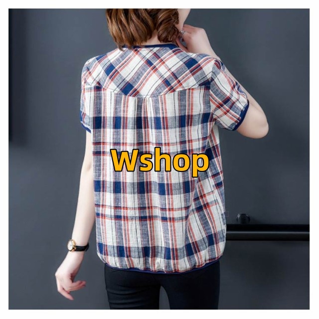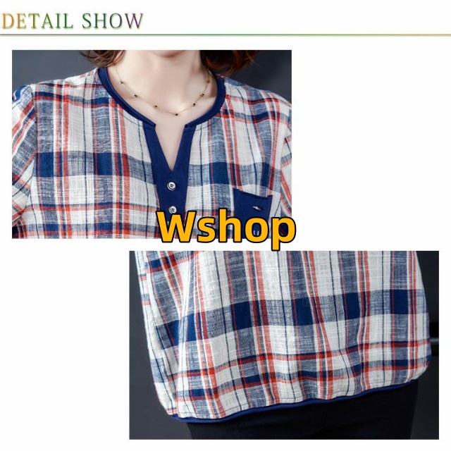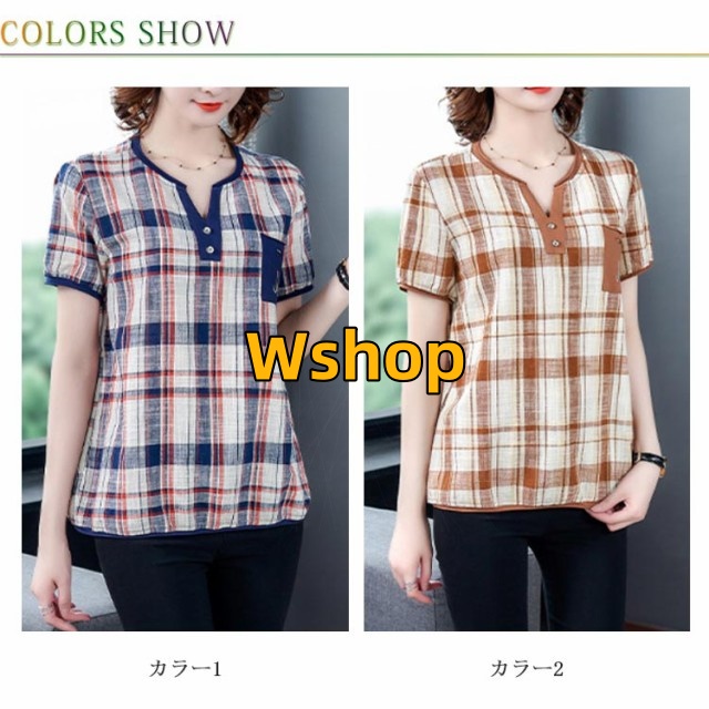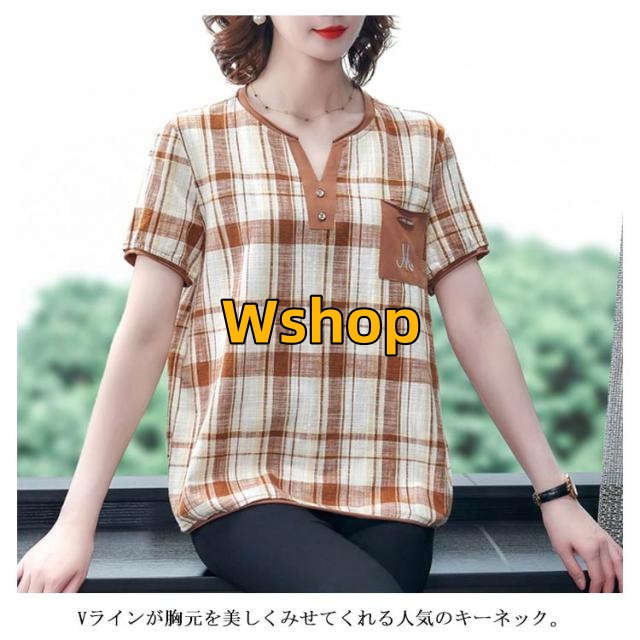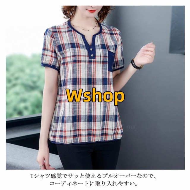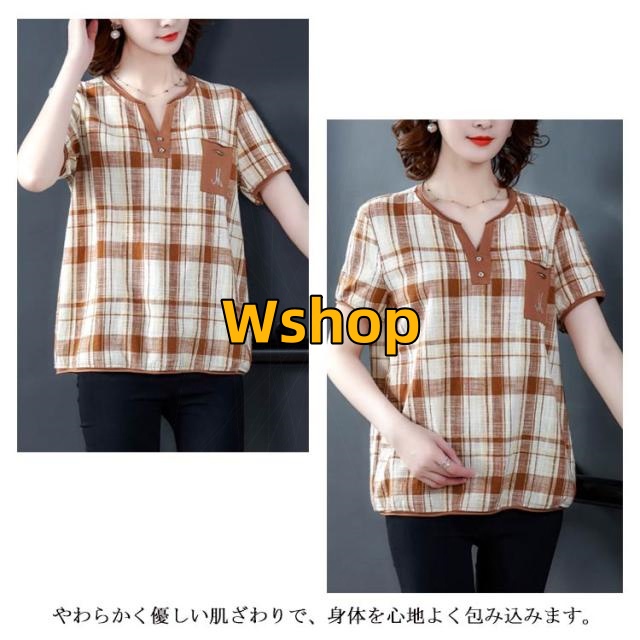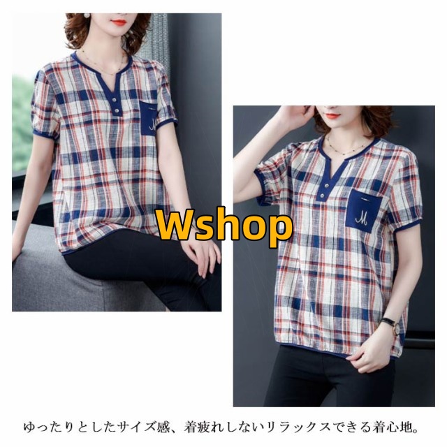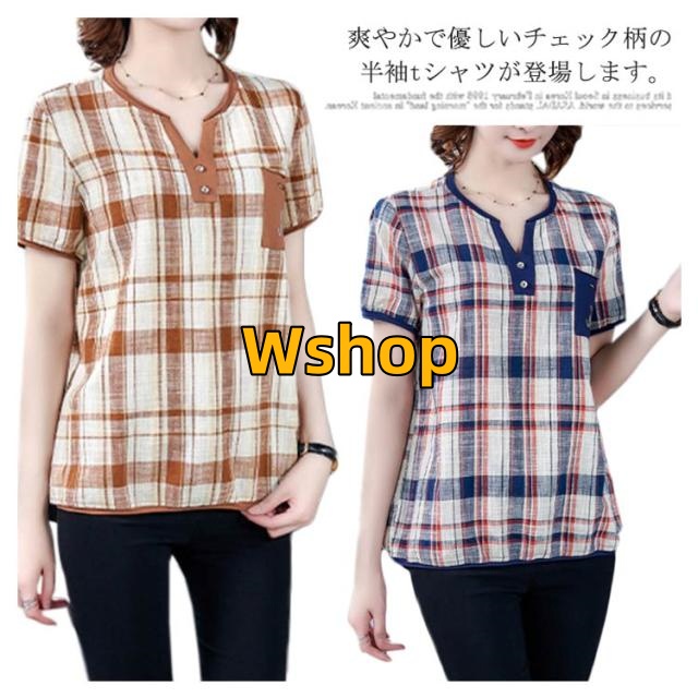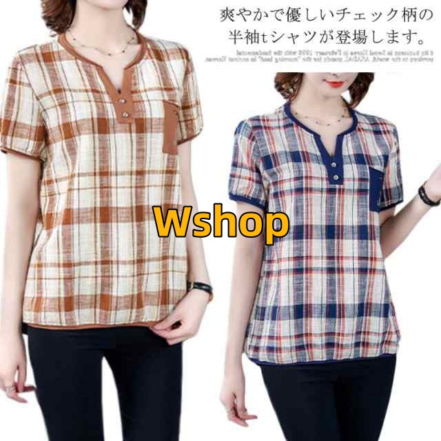 注目ランキング上位 毎日使える便利品 ゆったり レディース トップス 通勤 半袖 即納OK ポケット付き チェック柄 今だけ SNS話題 体型カバー シャツブラウス オーバーサイズ プルオーバー カジュアル シャツ シンプル ネック キーネック 涼しい チュニック 送料無料実施中