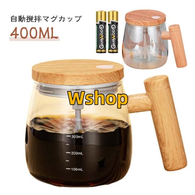 話題商品 レビュー高評価 電動自旋マグ マグネット 電動ミキシングカップ 大容量 ハンドル付き 自動撹拌 自動ミキサーカップ 家庭用 電池式 ガラス製 蓋付き 高速電気ポータブルセルフミキシングカップ 自動撹拌マグカップ 400 漏れ防止 オフィス 送料無料