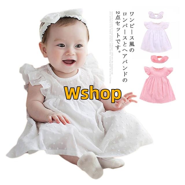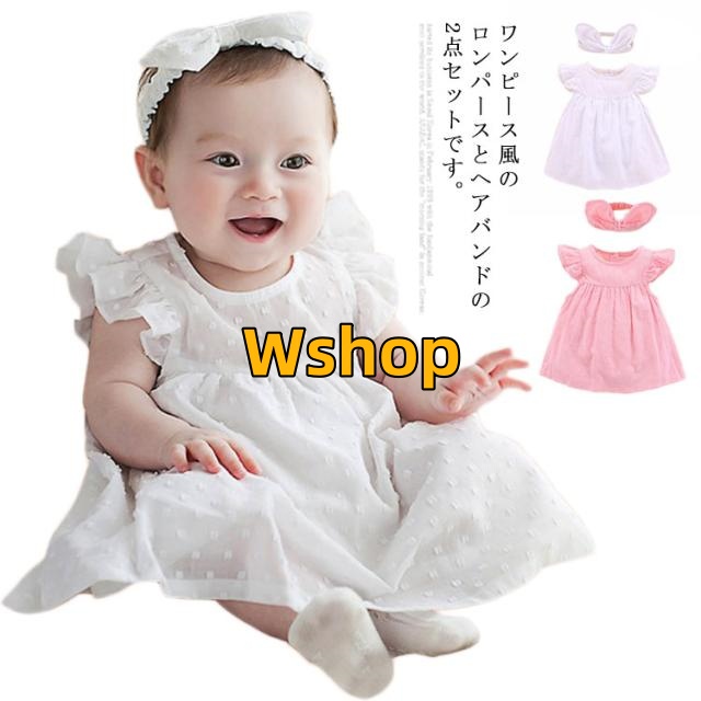 フリル袖 卒園式 夏 子供服 誕生日 春 ロンパース 出産祝い 結婚式 ヘアバンド付き 半袖 ロンパース かわいい 綿 送料無料 七五三 ベビー お祝い プレゼント ギフト ワンピース風 パーティ ベビードレス 赤ちゃん おしゃれ 入学式 ワンピース 女の子 入園式 ワンピース