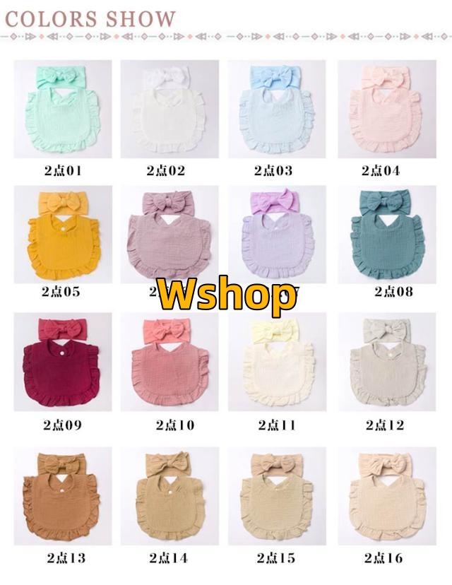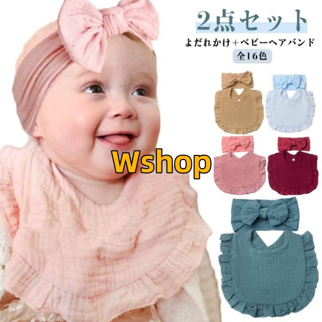 赤ちゃん お祝い 2点セット ガーゼ スタイ 夏 ベビー お食事エプロン キッズ おしゃれ よだれかけ+ベビーヘアバンド 春 可愛い 子供 結婚式 おしゃれ ネック 北欧 よだれかけ ビブ 出産祝い ベビー用品 綿