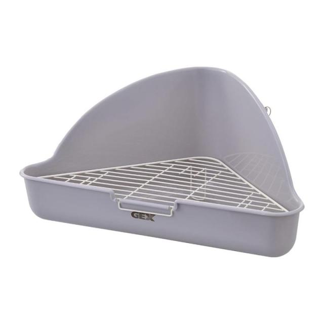 お部屋のインテリアにマッチするムーングレー ケージコーナーにすっきり収まる省スペースの三角トイレ。三角トイレシーツとラビレット ヒノキア消臭砂が付いた消臭セット。