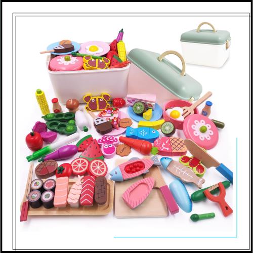 【超豪華、大量セット】計49点:このセットには寿司、野菜、果物、ピザ、魚、エビ、カニ、ステーキ、ビーンズ、アスパラガスが、ケーキ 、キッチン用食器などいろいろあります。木の温かみと適度な重みが高級感!また、セット内のバリエーションも多く、磁石で疑似的な調理が楽しめるので。なかなか他では売ってない内容がつまってます。包丁、まな板、フライ返し、塩、胡椒、ピーラー、お皿と必要な物は揃っているので買い足さずに遊べます!1個プラスチック収納箱(高品質、片付けもしやすいです、遊びや整理がより簡単になる)。日本の食品衛生法検査を合格しており安心してお遊び頂けます。