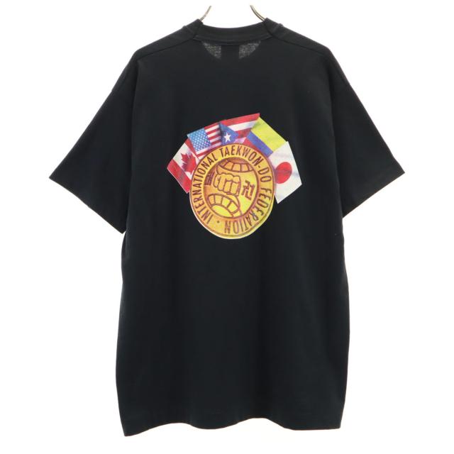 フルーツオブザルーム ベスト カナダ製 バックプリント ITF テコンドー連盟 半袖 Tシャツ L ブラック FRUIT OF THE LOOM BEST シングルステッチ メンズ