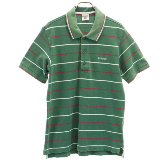 コロンビア ボーダー柄 半袖 ポロシャツ S グリーン Columbia アウトドア メンズ