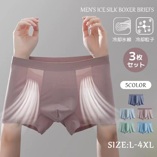 最安挑戦 冬新作 送料無料 新作 3枚セット メンズ ボクサーパンツ 冷感 アイスシルク メッシュボクサーパンツ フロントサイドメッシュ 超薄型 通気 吸水速乾 シームレス ボクサーパンツ 快適 ひんやり 涼しい 日常着 トレッチ 男性下着