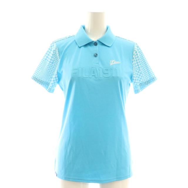 【中古】フィラ FILA GOLF ポロシャツ 半袖 チェック M 水色 /AT レディース