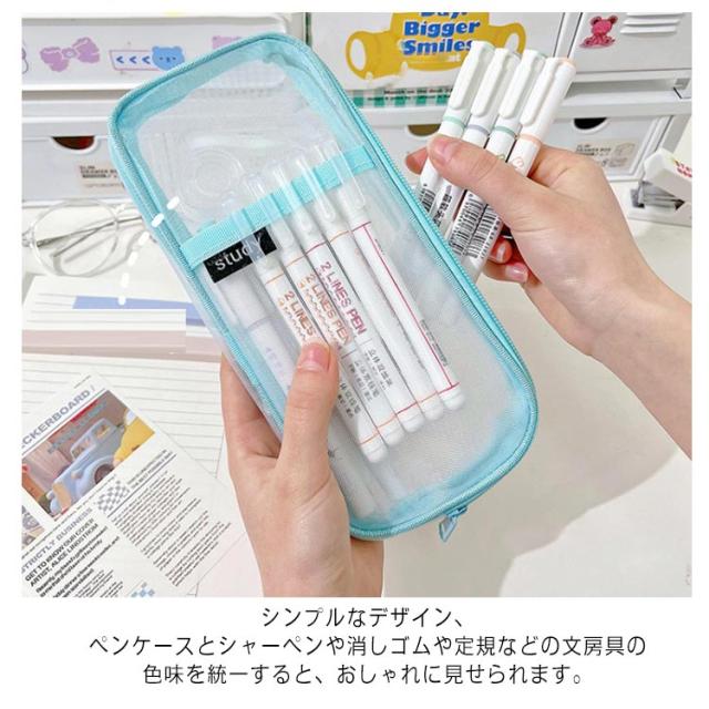 クリア ペンケース ペンケース 小学生 透明 筆箱 女の子 ペンポーチ シンプル おしゃれ メッシュ 大容量 化粧品収納 小物入れポーチ 高校生 文房具収納 男の子 中学生 韓国 ふでばこ