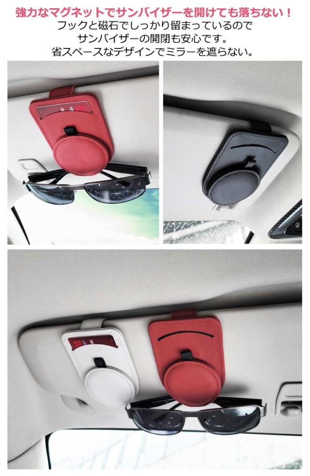車 カードホルダー 本革 サンバイザー サングラスホルダー メガネホルダー サングラスホルダー 車用 メガネクリップ マグネット 車内 収納 車載 ホルダー サングラス ホルダー クリップ マグネットタイプ マグネット カード収納