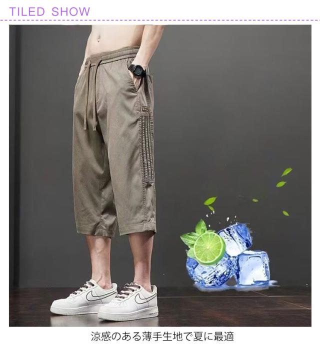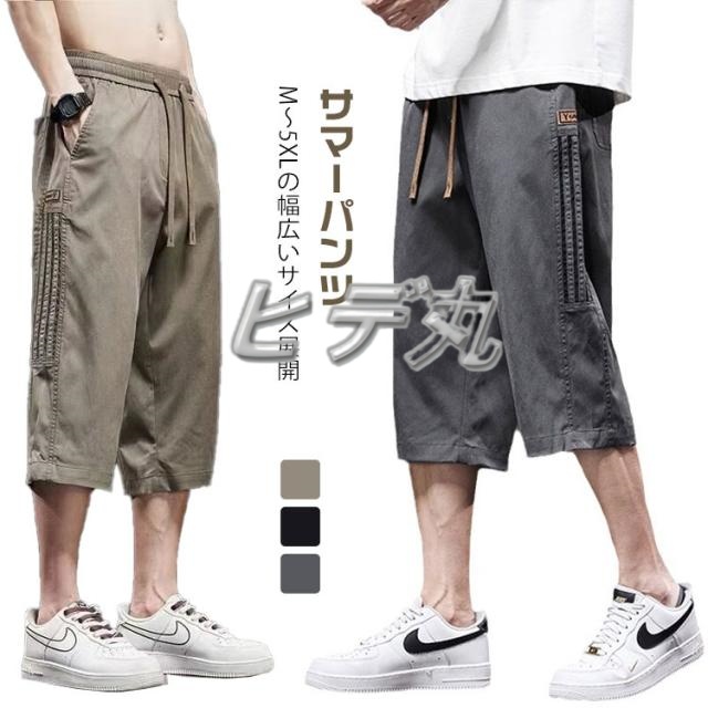 メンズ サマーパンツ 七分丈 カジュアル 薄手 涼感 ブラック グレー カーキ 春夏 ゆったり 通気性 M-5XL サマーパンツ スポーツ ウエストゴム 大きいサイズ 作業着風