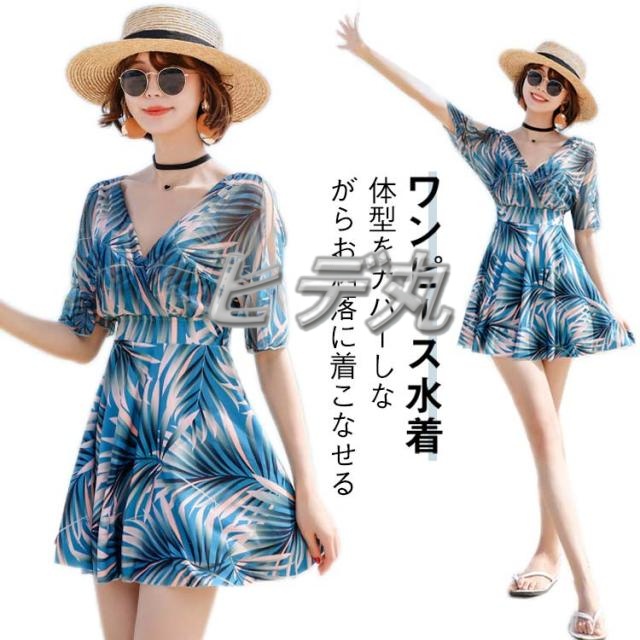 水着 レディース ママ水着 体型カバー 袖あり 半袖 ぽっちゃり 水着 Vネック 露出少なめ 大きいサイズ 母の日