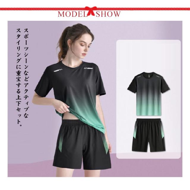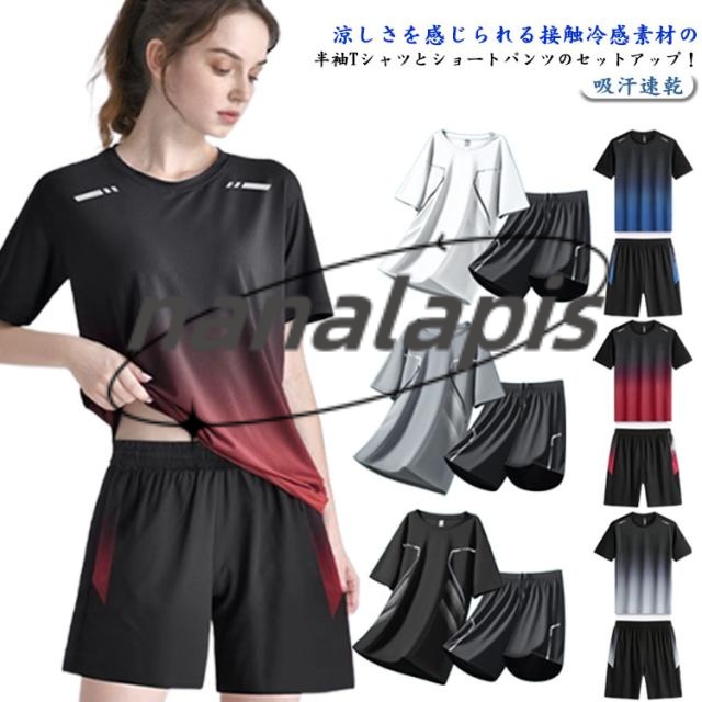 セットアップ スポーツウェア ジャージ メンズ ショートパンツ 吸汗 レディース スポーツウェア 速乾 Tシャツ 接触冷感 半袖 軽量 通気性 ランニングウェア トレーニングウェア フィットネス ジム ルームウェア 部屋着