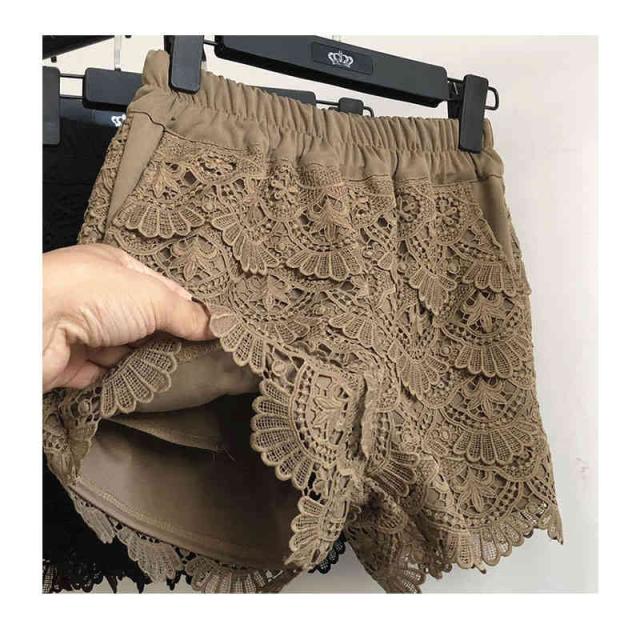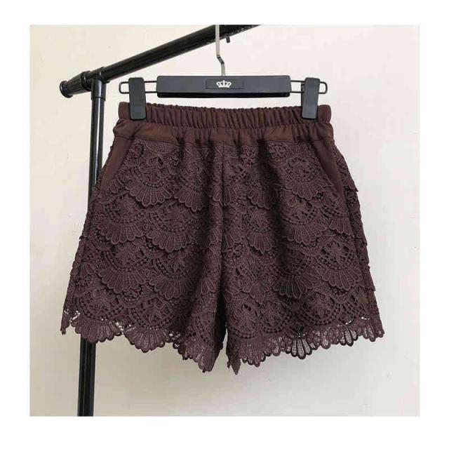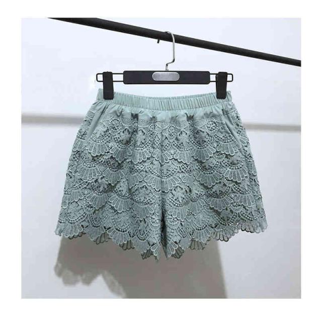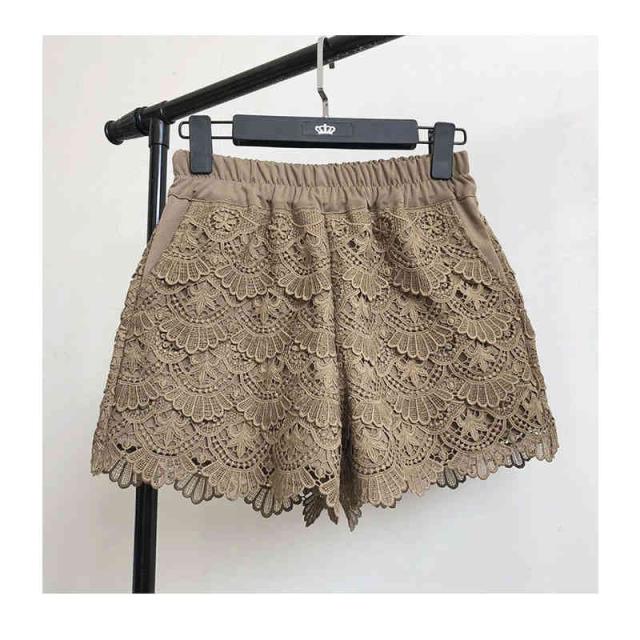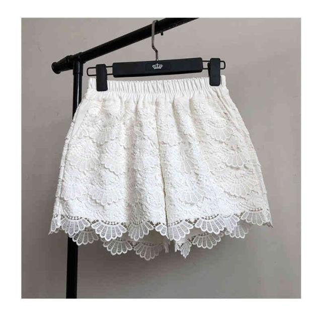 送料無料 レースパンツ レディース 春 夏 秋 冬 ワイドパンツ ハイウエスト レース付き 切り替え ショートパンツ フリルパンツ ウエストゴム レース付き 下着 ペチパンツ 肌着 安全パンツ 短パン ショ-トパンツ 部屋着 無地 シンプル カジュアル おしゃれ