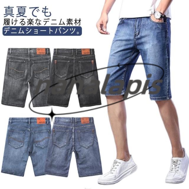 2点セット ハーフパンツ メンズ デニム ストレッチパンツ デニムショートパンツ 五分丈 薄手 ジーンズ 短パン デニムパンツ 大人 カジュアル シンプル 大きいサイズ 春夏