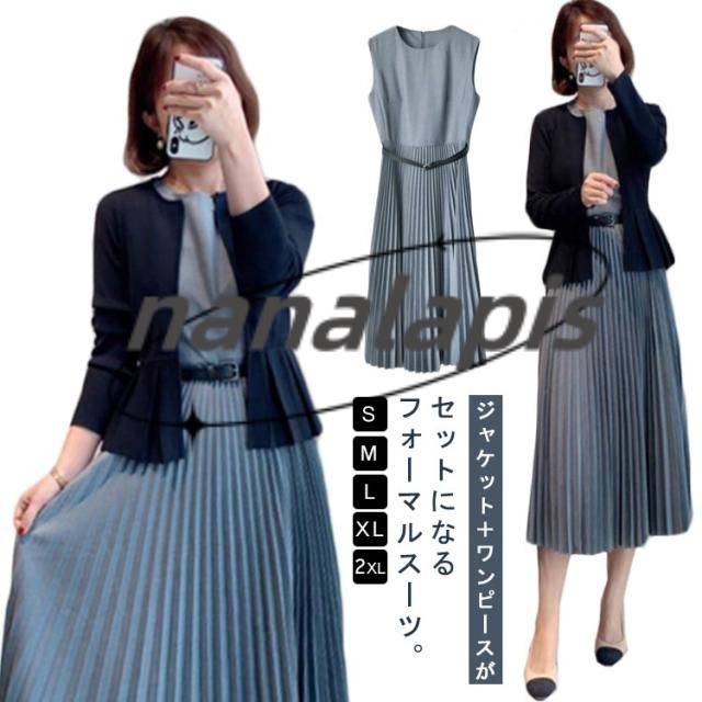 レディース スーツ フォーマルスーツ 2点セット 上品 ワンピーススーツ 母親 ママスーツ セレモニースーツ 入学式 七五三 プリーツワンピース セットアップ 卒業式 お宮参り フォーマルスーツ 参観日 黒 母 女性 服装 オフィス 通勤 フォーマル カジュアル