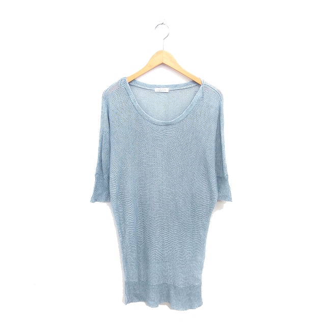 【中古】フレームワーク Framework ワンピース サマーニット リネン ひざ丈 薄手 プルオーバー 七分袖 薄緑 グリーン