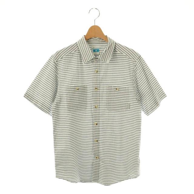 【中古】コロンビア Columbia シアサッカーボーダー半袖シャツ M ダークネイビー ホワイト /DF ■OS メンズ