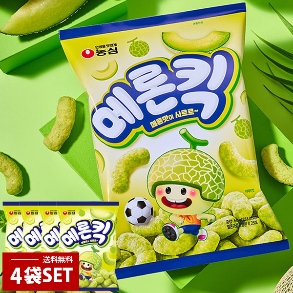 [農心] メロンキック メロンのお菓子 4個セット / 60g×4袋 コーンスナック 韓国お菓子 サクサク ふんわり新感覚 韓国産 マスクメロン味 スナック 農心